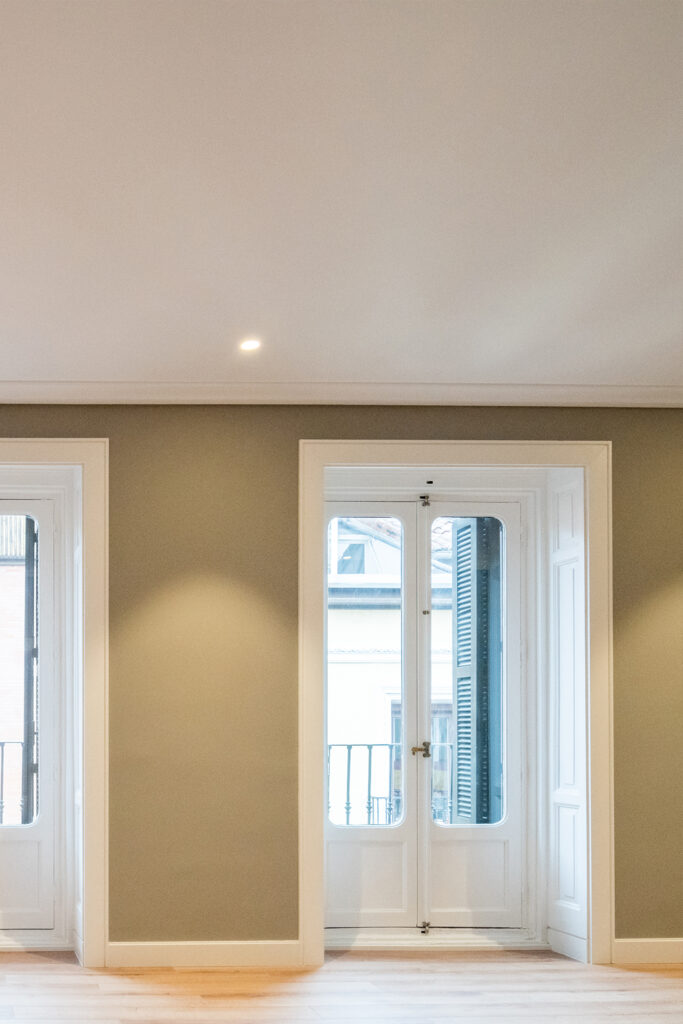 La reforma integral de esta vivienda se concibió a partir del respeto de la estructura existente y de la jerarquía de espacios típicos en las viviendas de este barrio madrileño.