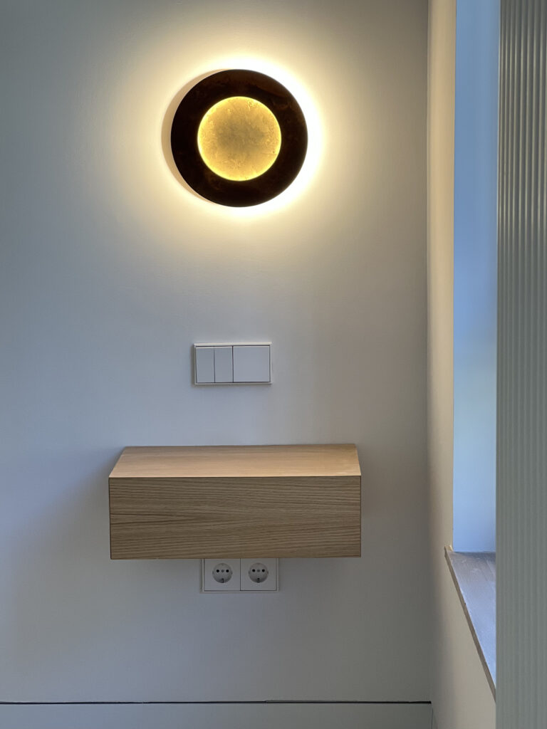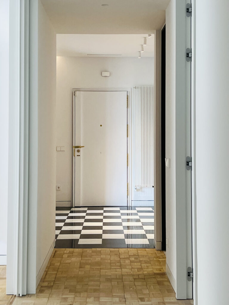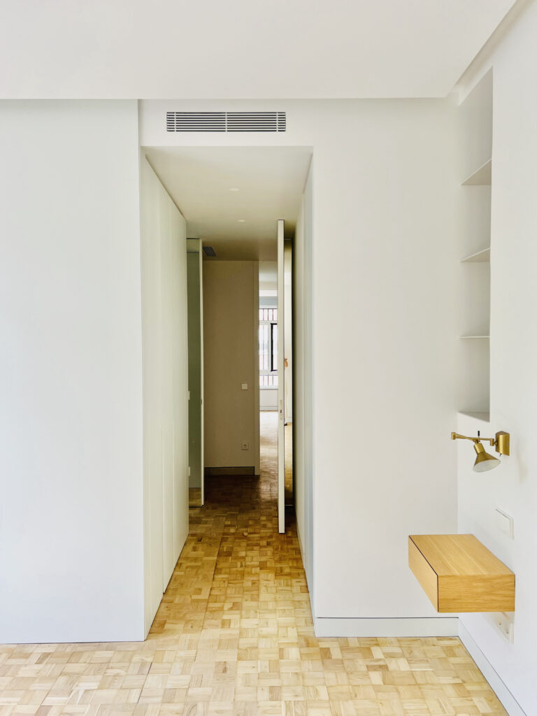 Se restauraron los suelos existentes de roble y castaño que disponían de un despiece muy personal. En las puertas se incorporaron unas maravillosas manillas de latón diseñadas por el padre de la Propietaria en los años 70.