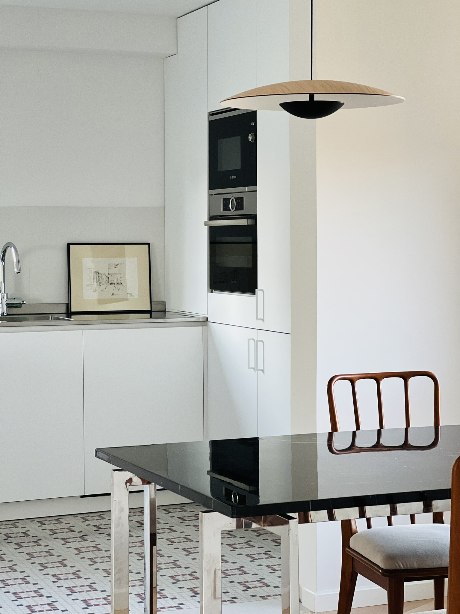 En la cocina, el empleo del espejo y la encimera de acero aportan autenticidad y modernidad atemporal.