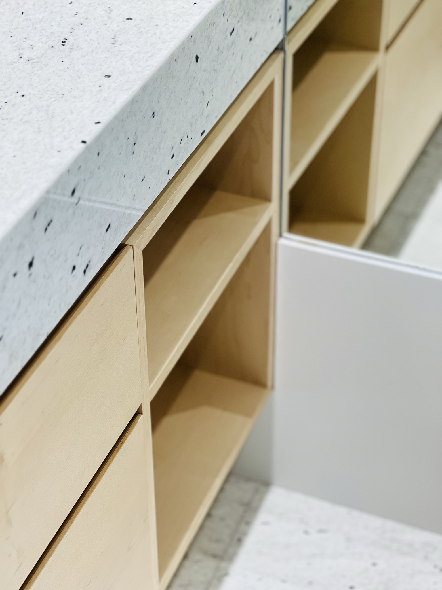 Diseñamos con mimo todos los elementos de la vivienda: cocina, encimeras de baños, cajoneras, mesas, mesillas, librería y puertas y embocaduras, librerías.